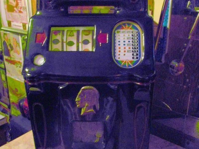 MACHINE PLAYS AND PAYS AS IT SHOULD WOULD BE A GREAT ANTIQUE SLOT MACHINE FOR ANY BODEYS,