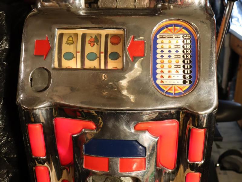 NOT TO MANY OF THEASE ANTIQUE SLOT MACHINES WERE MAID BACK IN 1947 PLAYING
