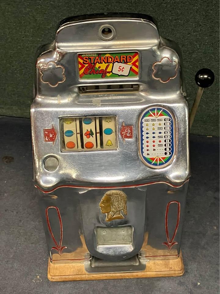 "1947 JENNING'S STANDRED CHIEF ANTIQUE SLOT MACHINE.