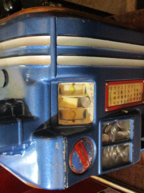 1937   COLUMBIA-GTOTCHEN 5 CENTS-ANTIQUE TRADE STIMULATOR SLOT MACHINE ION GREAT WORKING CONDITION.THIS MACHINE WOULD SIT ON TOP OF A BAR OR WOULD BE USED AS A GAMBLING SLOT MACHINE IN ANY TYPE OF STORE ALSO PAYS JACKPOTS OUT IN COIN FROM SLOT MACHINE.